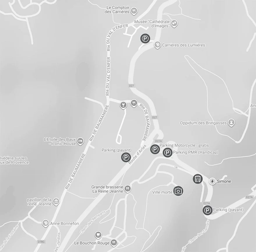 From Avignon, Arles, or St. Remy-de-Provence - Zou Line 707: Avignon <> Saint-Rémy <> Les Baux <> Arles. Limited stops in Les Beaux during the off-season, otherwise by bus to Saint-Rémy-de-Provence, then take a 20-minute taxi to Les Beaux. A PDF of the bus schedule can be found here.
